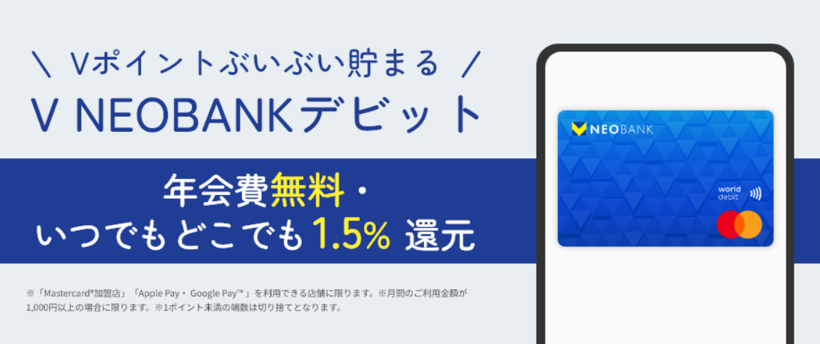 このデビットカードを使えれば1.5%分のVポイントが付くので