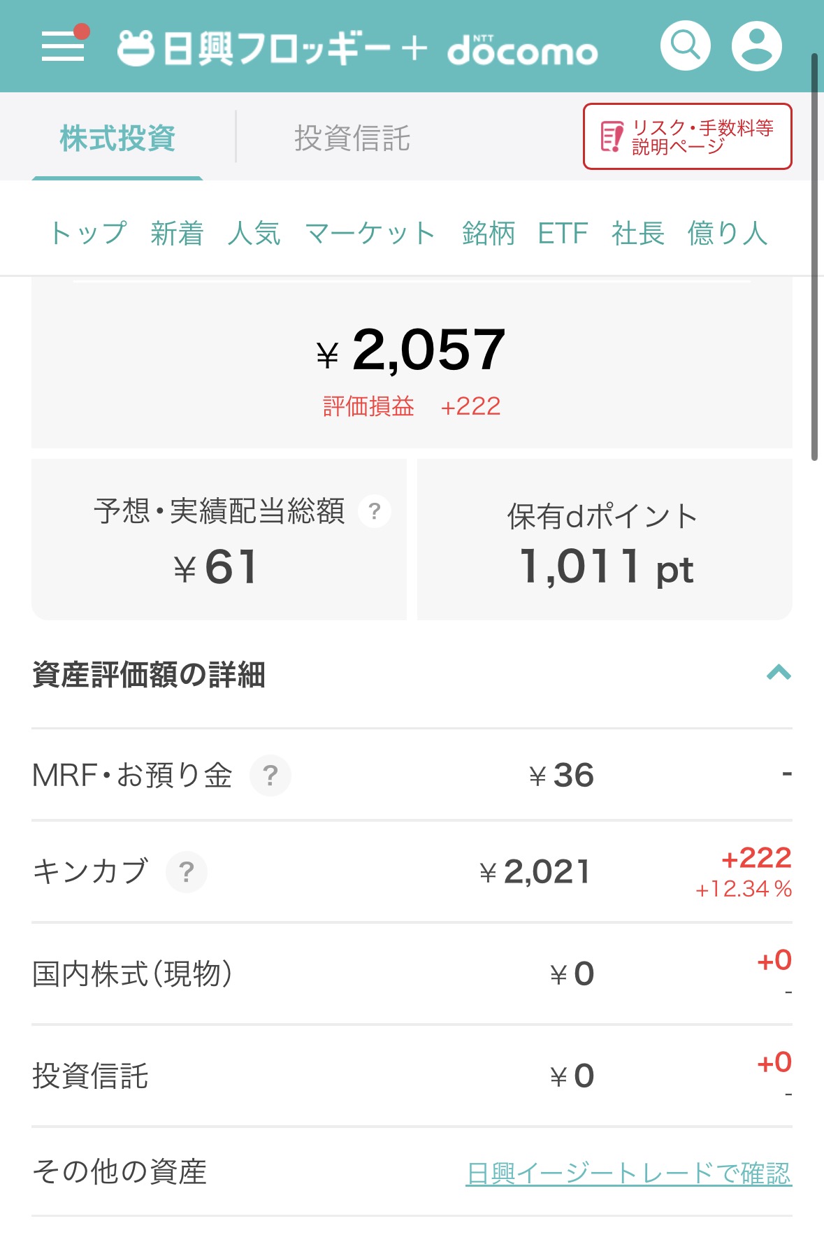 昨年6月に始めたフロッギーのdポイント投資ですが、今もコツコツ続けています。