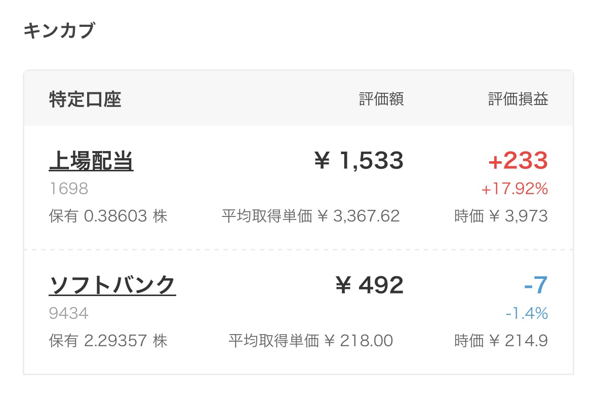 端株でも配当が得た方が効率良さそうと思い、ソフトバンクを追加してみました。