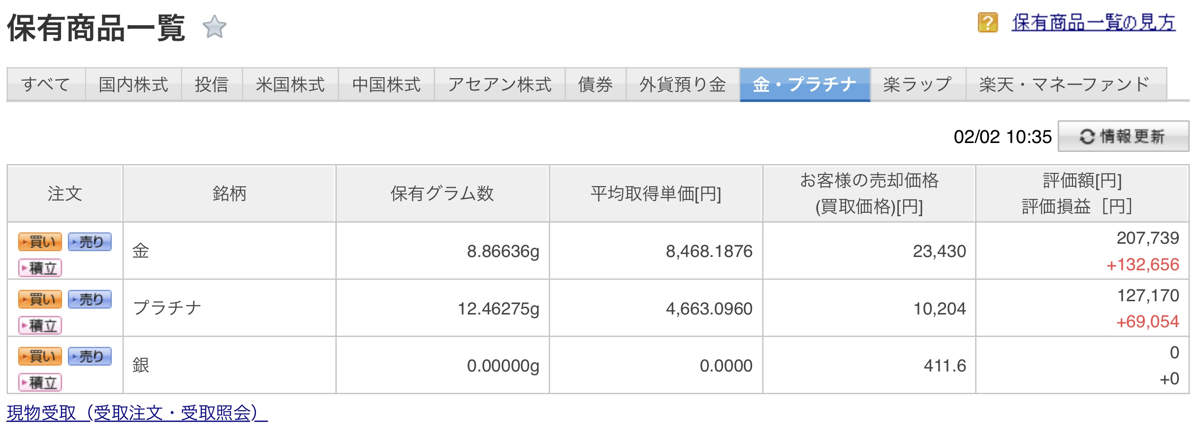 金・プラチナ積立の評価額はどれくらい増えた?