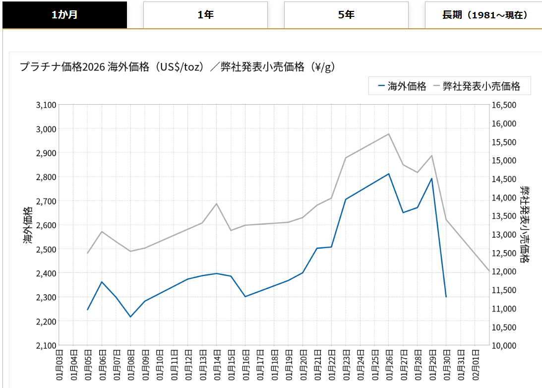 プラチナの価格推移