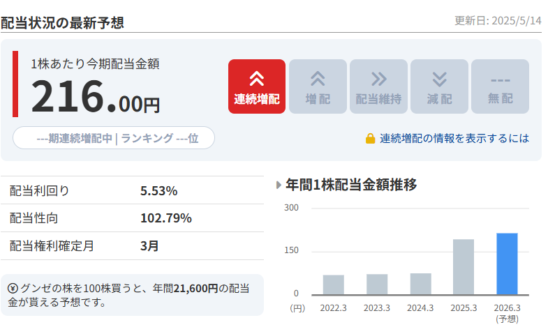 グンゼは以前から気になっていたものの、当時は高いし利回りもそんなに・・・な銘柄だったんですよね。