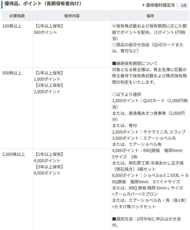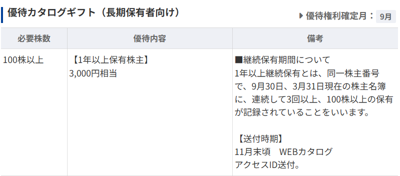 こちらも長期保有が前提ですが優待があります。