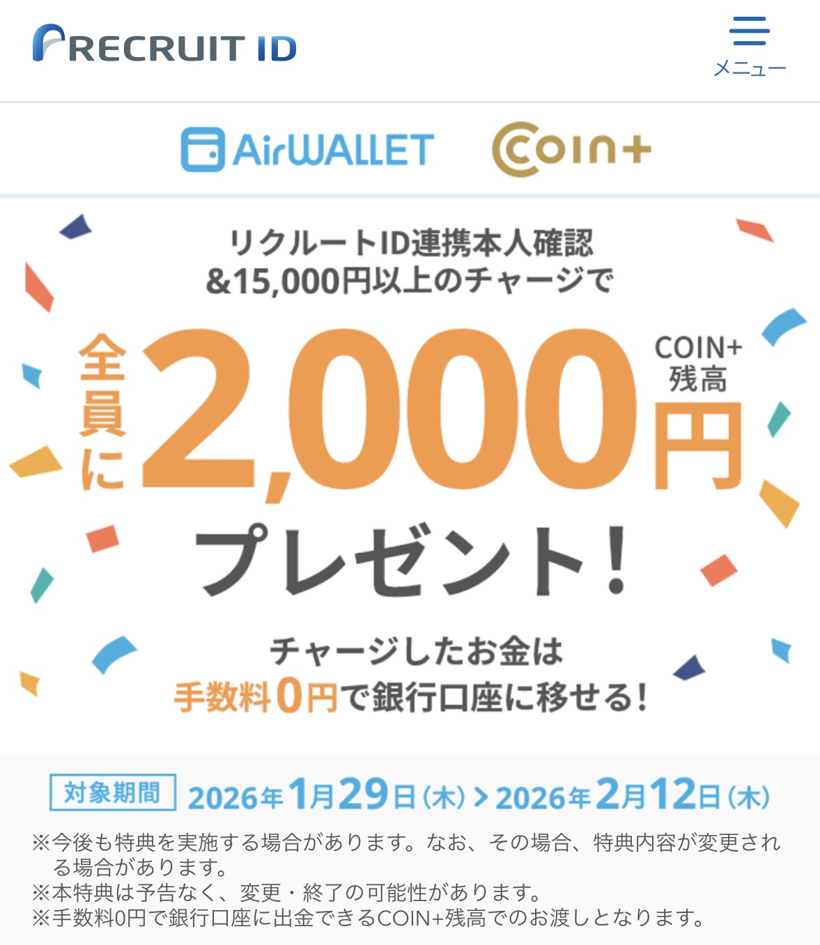 エアウォレットのキャンペーンも要チェック!