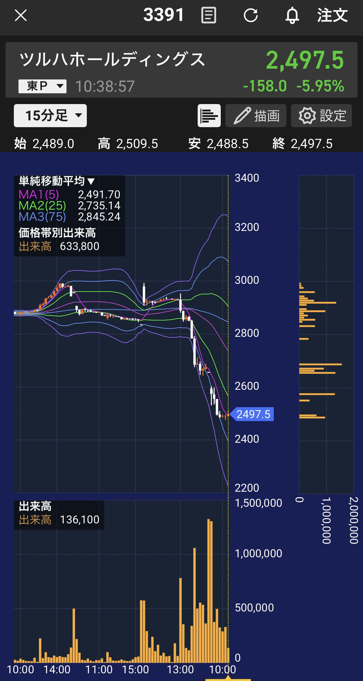 ツルハホールディングスは今朝も強烈な下げをしていたのですが、