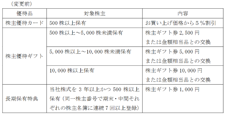 以前は500株必要だった優待が、100株でも貰えるようになります。