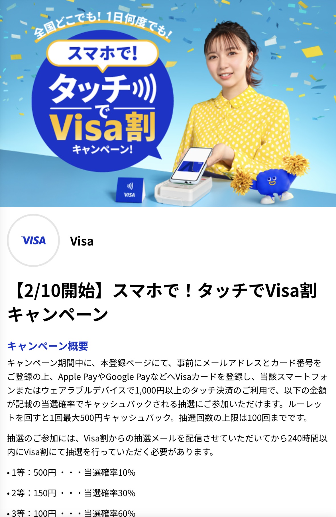 本日2/10開始のVISA割キャンペーンです(*´ω`*)